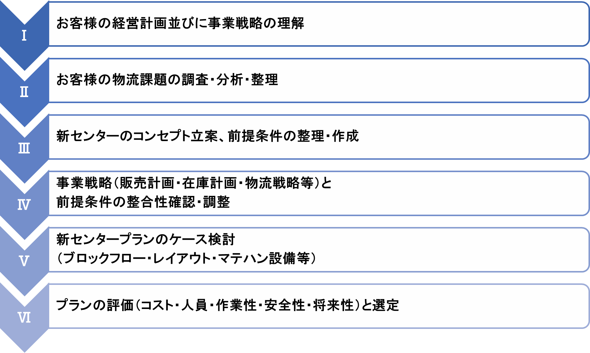 計画立案フェーズでは、お客様と共に中長期の事業戦略実現に繋がる新センターの計画立案を実施いたしました。